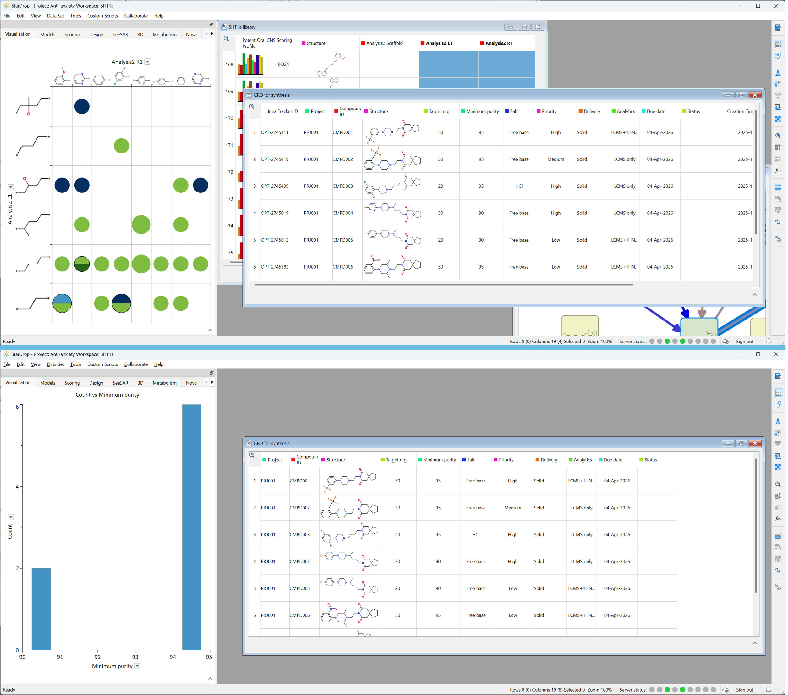 Your internal team designs and triages compounds in StarDrop, while your CRO partner handles synthesis and bioassay work. Results return as assay data, which your team evaluates alongside ADME predictions to prioritise the next synthesis round.