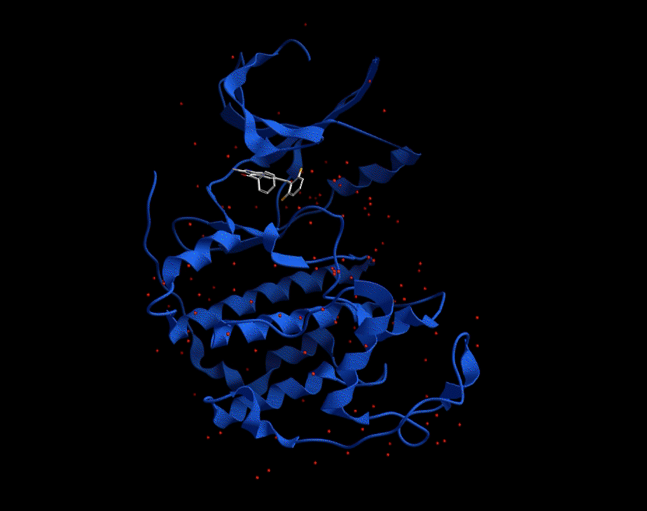 3D visualisation of the CDK2 kinase, 1PYE, in StarDrop 8.1, including new secondary structure ribbons.