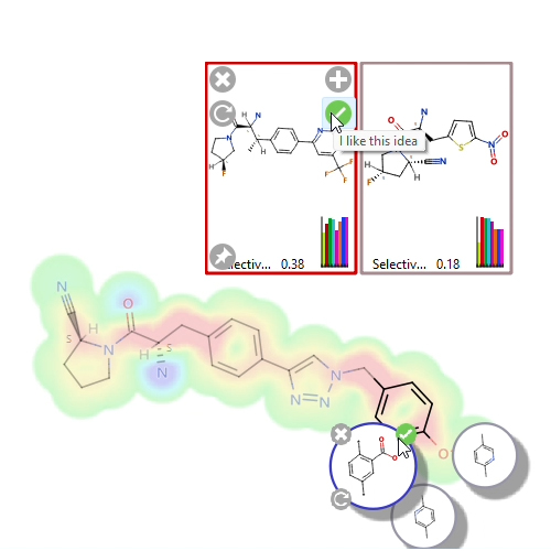 Combine your expert chemistry knowledge and the exploratory power of generative methods to identify optimal compounds faster