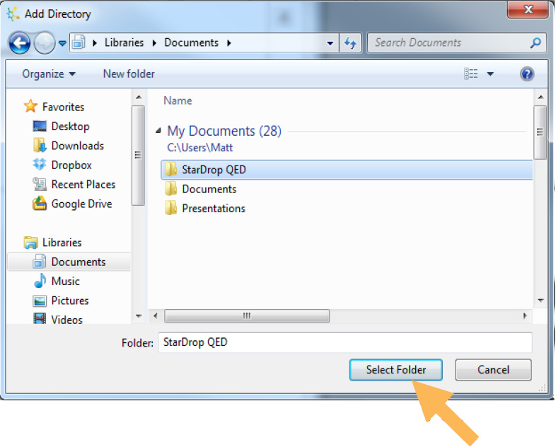 Navigate to the location of the StarDrop QED folder, select this folder and click Select Folder.
