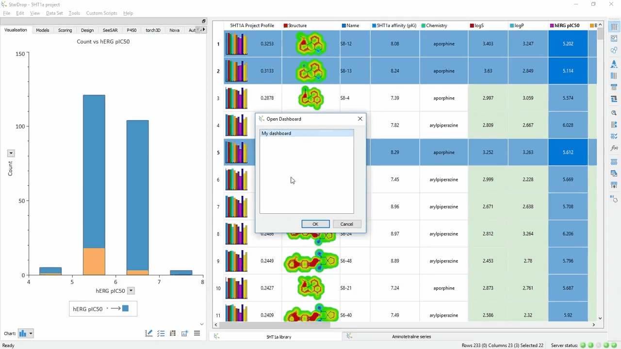 StarDrop’s drug discovery data visualisation provides a wide variety of chart types, including: histograms, box plots, SAR and category plots, 2D and 3D scatter plots, radar plots, heat maps, pie charts, line and multi-line plots, and ROC curves.